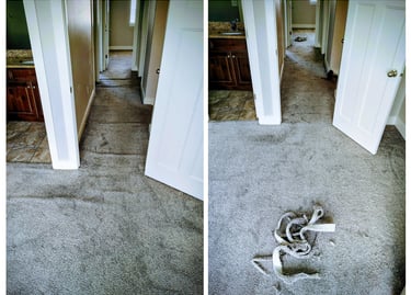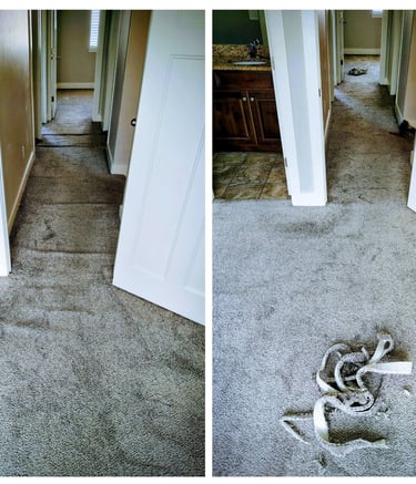 Showing carpet repairs and stretch results done by our team.